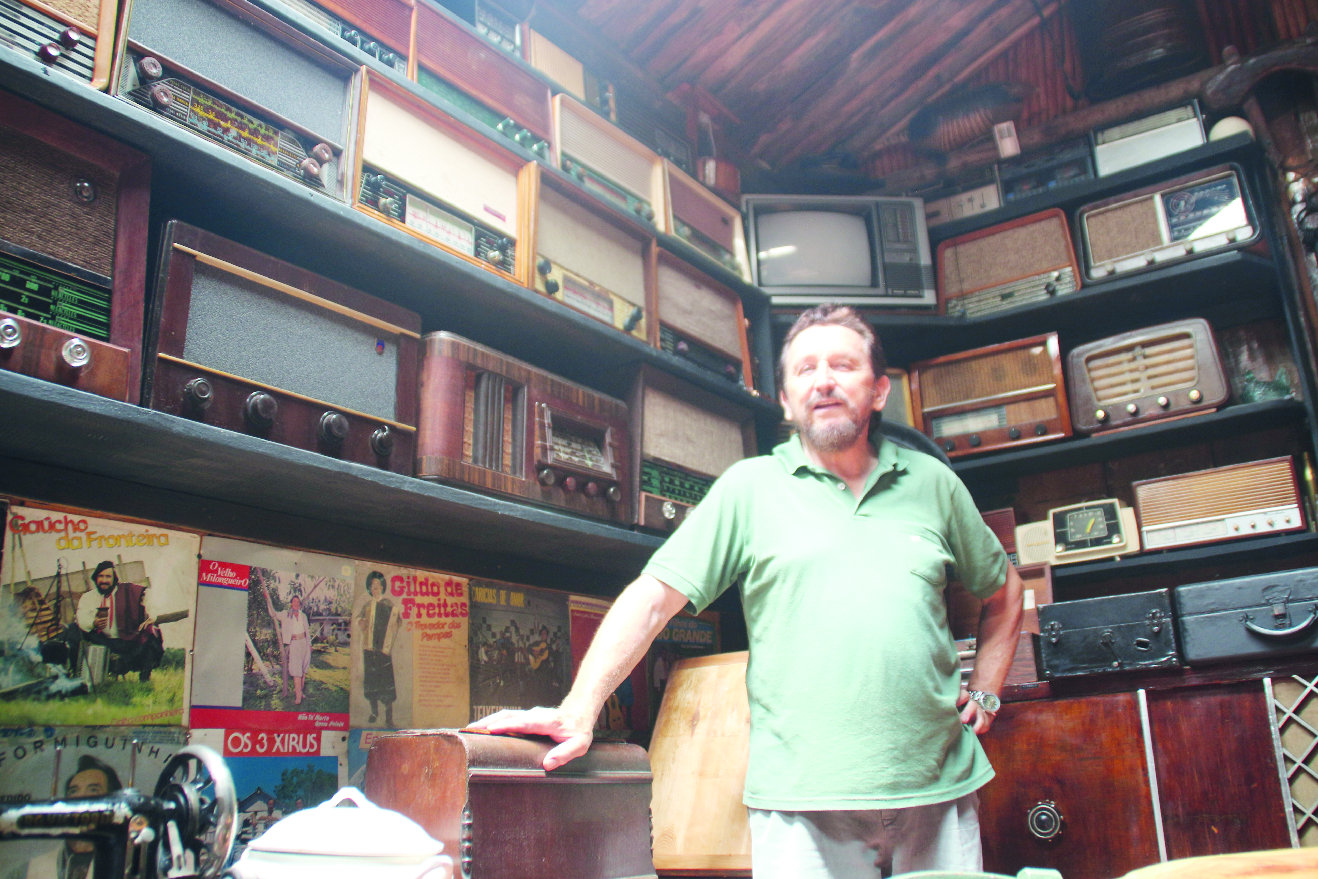 Relíquias como rádios, vitrolas e gramofones e discos, estão funcionando em perfeito estado. "Muitos que não conseguem consertar, eu mesmo faço a restauração deixando como ele era quando funcionava", comenta. Nas paredes estão artigos curiosos como um tirador de botas ou um rabo de uma vaca. "Este servia para os antigos guardarem e limparem os pentes" destaca.