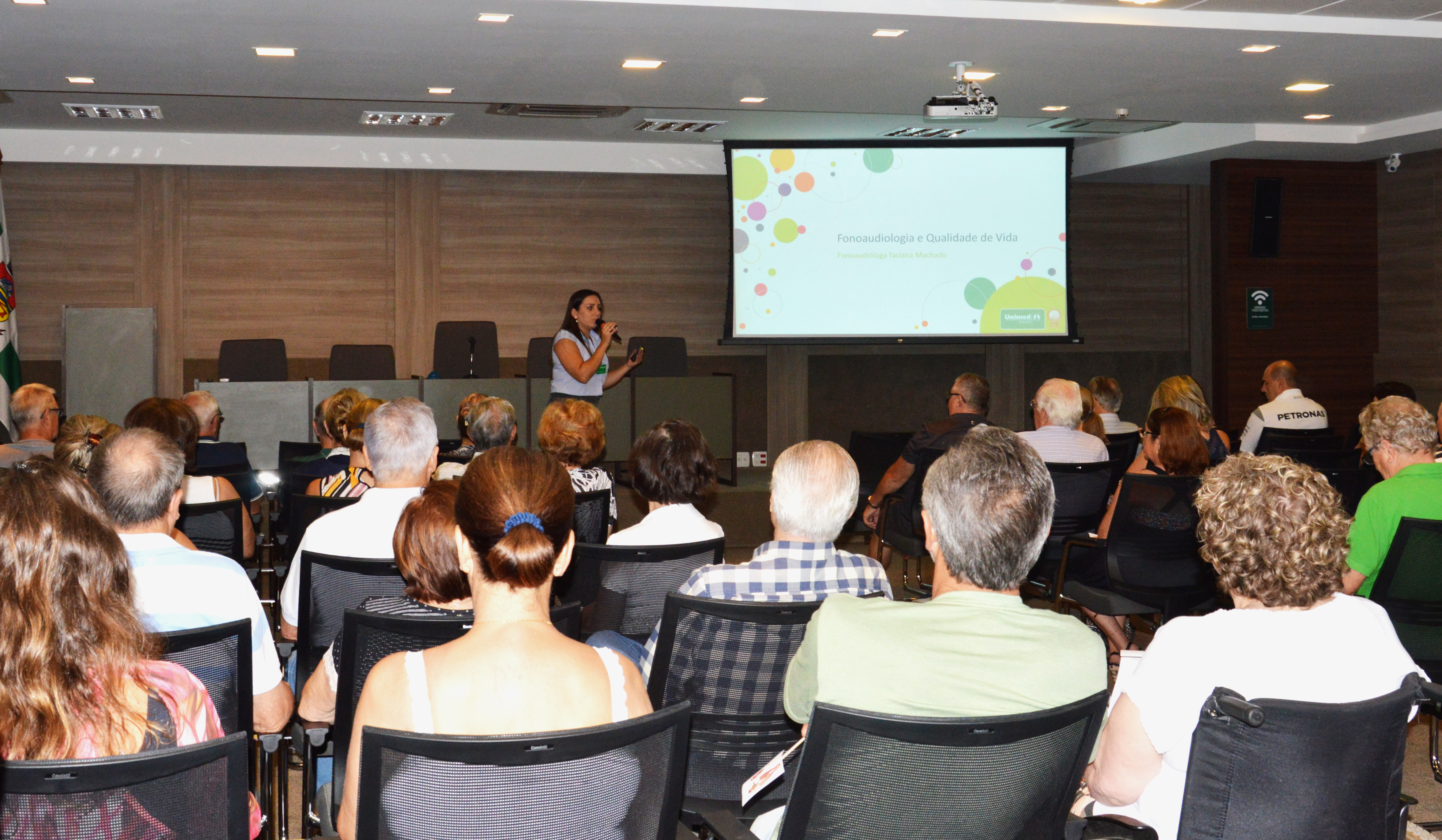 Neste ano, as palestras iniciaram com o tema “Fonoaudiologia e Qualidade de Vida”, proferida pela fonoaudióloga da Unimed, Taciana Machado. Usando situações cotidianas, a palestrante abordou aspectos relativos à linguagem, motricidade oral, audição, fala, cognição e voz.