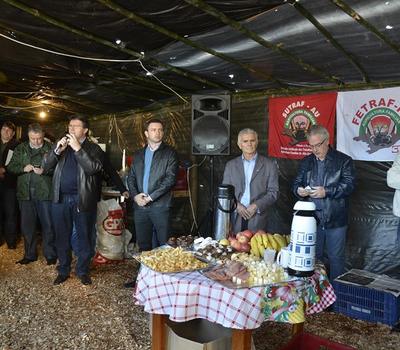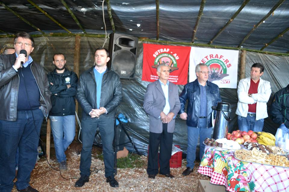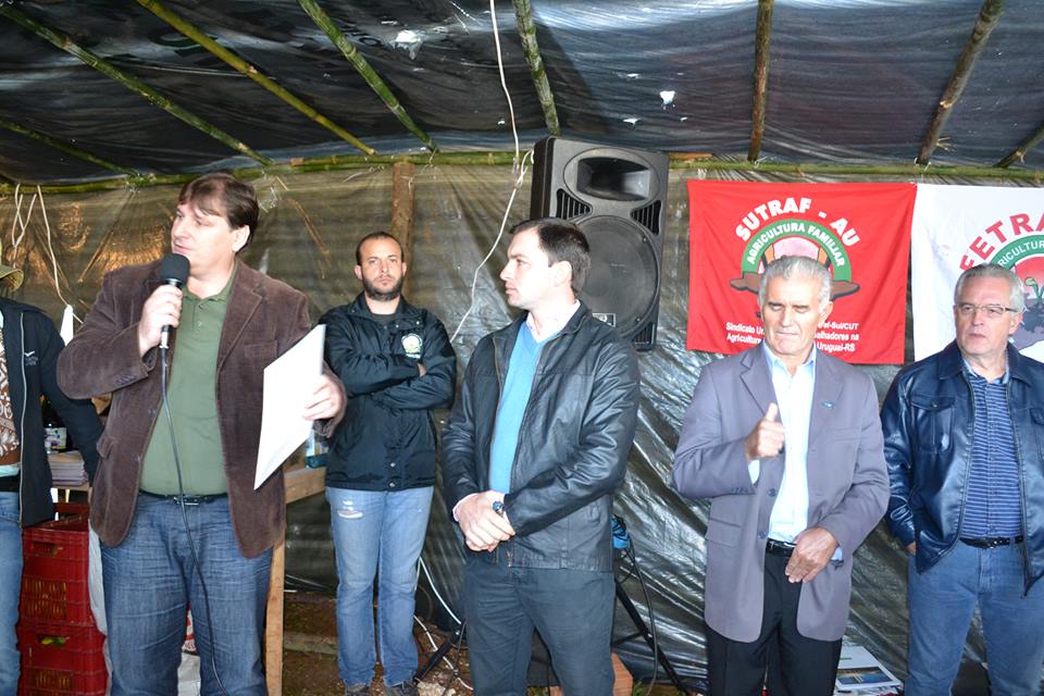 Durante o evento, o coordenador geral do SUTRAF-AU, Douglas Cenci, apresentou a pauta do movimento, dando ênfase às ameaças dos direitos que estão para serem votados na Câmara Federal pelos deputados federais. Cenci agradeceu as autoridades pela presença e apoio a mobilização, ressaltando o sucesso do acampamento, desde a participação dos agricultores como apoio da população que passa pela rodovia. Na oportunidade, o prefeito de Jacutinga e também presidente de Associação dos Municípios do Alto Uruguai (AMAU), Beto Bordin, manifestou o apoio institucional da entidade contrária a reforma, referendando que apoiam a mobilização dos agricultores.
