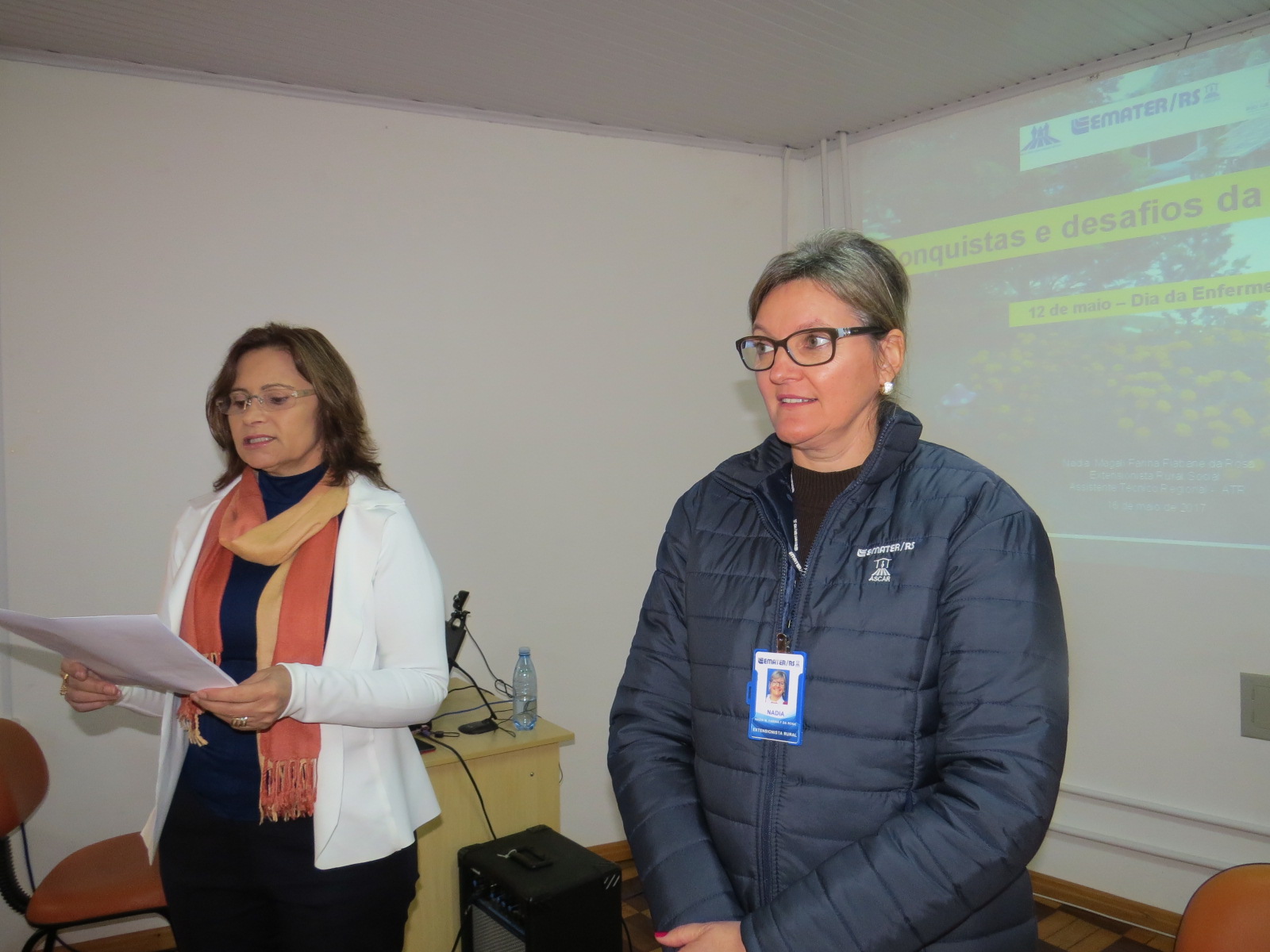 A enfermeira Olira Loreno parabenizou a categoria, agradeceu a presença de todos ressaltando a importância do trabalho na da saúde. Ela também agradeceu Nádia da Rosa e a parceria da Emater/RS-Ascar. O evento encerrou com coquetel de confraternização.