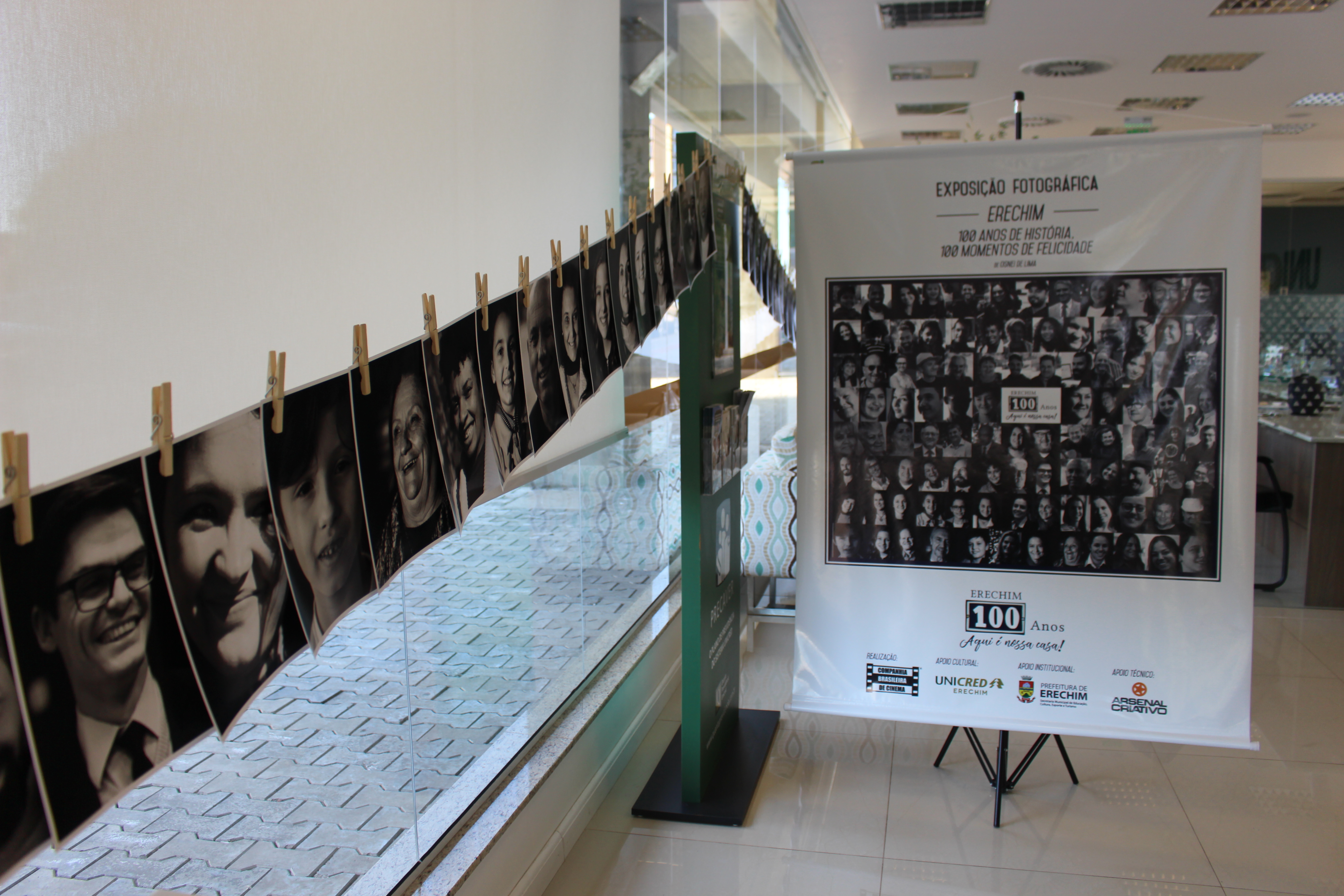 A exposição fotográfica “100 Anos de História – 100 Momentos de Felicidade”, realizada pela Companhia Brasileira de Cinema com apoios cultural da Unicred, institucional da Prefeitura de Erechim e técnico do Arsenal Criativo, pode ser visitada na sede da Unicred Erechim até a terça-feira (27). Aberta oficialmente no domingo (18), a exposição é um dos eventos que marca a contagem regressiva em comemoração ao centenário do município.