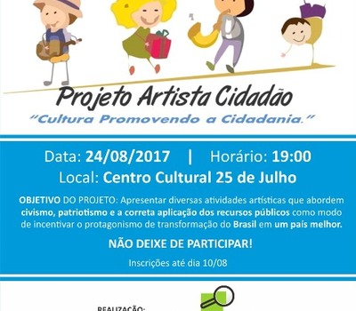 Em sua terceira edição o “Projeto Artista Cidadão”, quer, por meio do Movimento Área Livre de Corrupção, despertar nas pessoas o espírito de patriotismo e a consciência cidadã, resgatar valores e atitudes que compõem o senso coletivo de moralidade, civismo e cidadania para construção de um Brasil melhor, tomando como bandeira o destaque e a valorização das boas iniciativas.