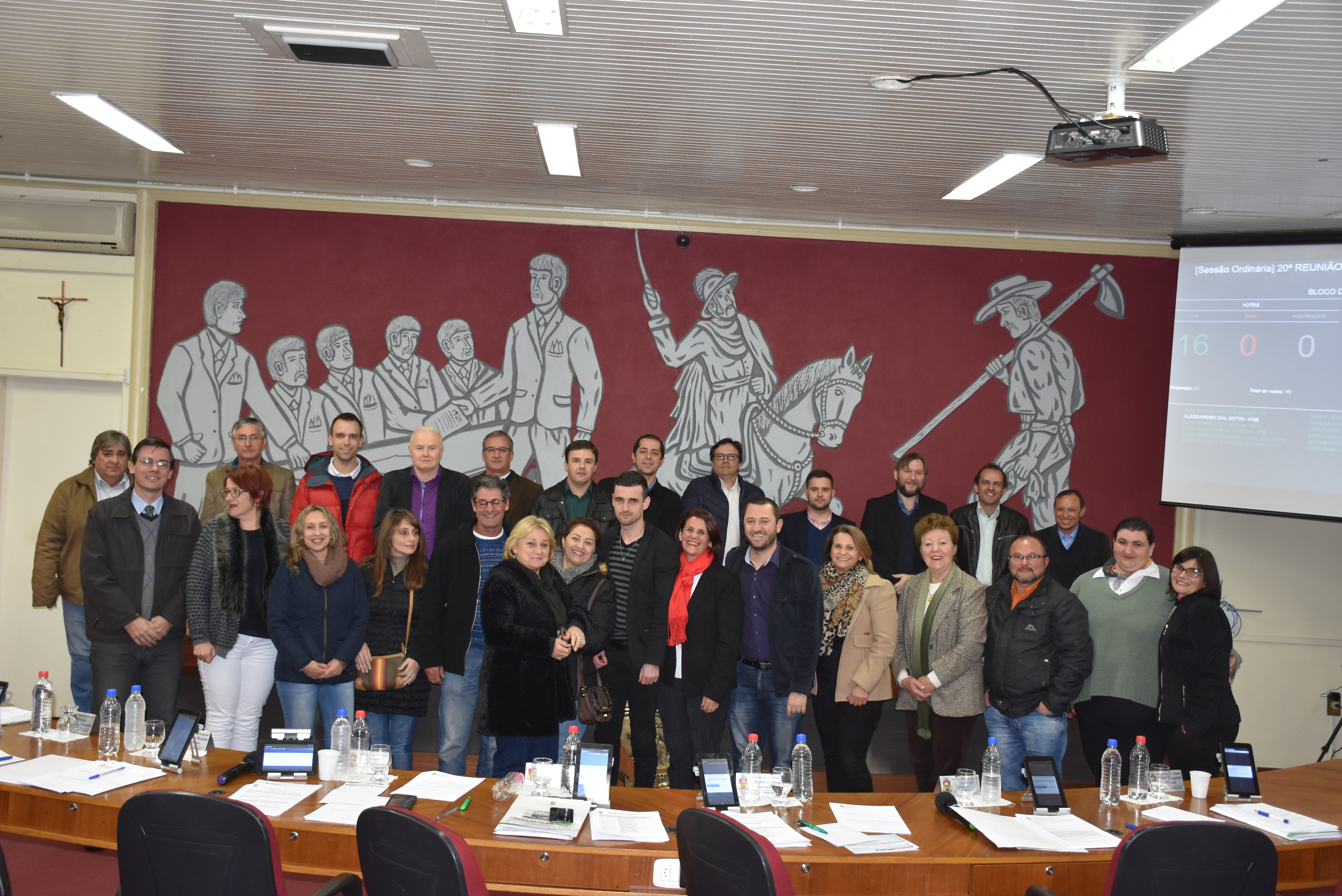 Proposição de autoria do presidente da Câmara, Alessandro Dal Zotto, votada por unanimidade nesta segunda, requer o envio de Votos de Congratulações a Claire Lourdes Bresolin, que estava presente no Plenário, juntamente com demais professoras, e para a 15ª CRE, pelo Projeto premiado de Revitalização de Bibliotecas da região.