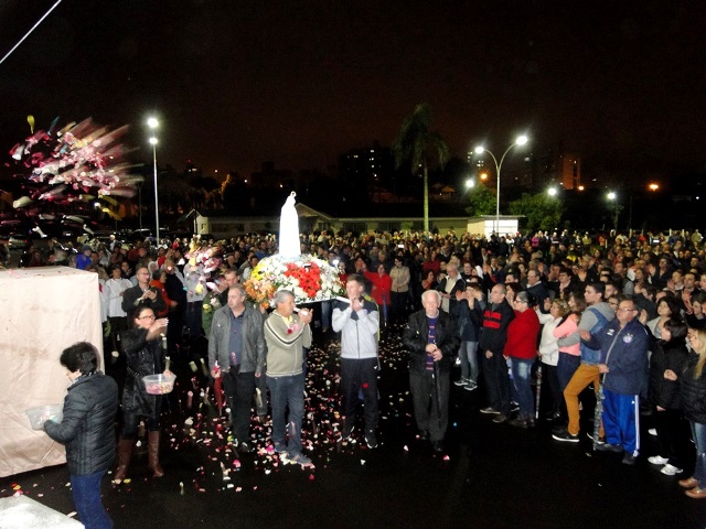 Na homilia, padre Valter, dentro do enfoque da noite, convidou a todos a se alegrarem imensamente pela visita de Deus e de Nossa Senhora aos seus filhos e filhas. No texto distribuído à imprensa, a assessoria diocesana de comunicação recorda que “ Deus visitou o seu povo escravo no estrangeiro, chamando Moisés para libertá-lo, conforme a leitura bíblica da missa. Maria Santíssima, segundo o evangelho da celebração, visitou sua prima Isabel. Ao longo da história, pelas aparições de Maria, Deus continua a visitar seu povo. Há 100 anos, em Fátima, ela trouxe amparo e consolo na dolorosa situação da primeira guerra mundial, fazendo fortes apelos à penitência, à conversão, à oração pela paz e à consagração das famílias a seu sagrado coração. Ela continua a visitar a todos de diversas formas. Nunca, porém, sozinha. Sempre com seu Filho Jesus.