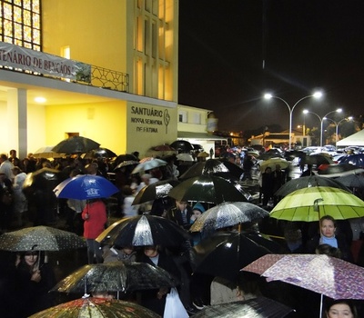 As previsões de chuva para ontem (6) se confirmaram e os devotos de Nossa Senhora de Fátima, permaneceram em fé e oração na penúltima noite da novena em preparação da romaria deste domingo (8).
