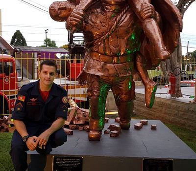O Corpo de Bombeiros Militar do Rio Grande do Sul (BMRS), realizou na noite desta quarta-feira (20) uma solenidade em comemoração aos 50 anos de atuação da instituição em Erechim. Na ocosião foi inaugurado uma estátua que concretiza as homenagens ao Corpo de Bombeiros Militar de Erechim. O monumento foi idealizado e construído pelo soldado Dair Gutowski. A estátua pesa aproximadamente 4 toneladas e foi construída com uma faca de cozinha.