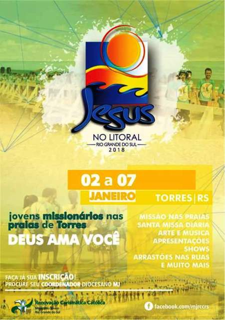 Cerca de 150 jovens estarão no litoral gaúcho, em Torres, para realização de projeto de evangelização, entre os dias 02 e 07 de janeiro. O projeto intitulado “Jesus no litoral” será desenvolvido pelos jovens da Renovação Carismática Católica, e está na décima segunda edição.