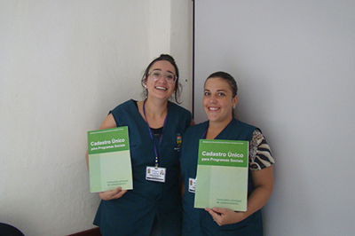 A ação está sendo realizada por duas entrevistadoras identificadas, que estão visitando as famílias com o intuito de realizar o cadastro, além de informar as famílias de seus direitos ou notificando as famílias para que procurem a Secretaria de Cidadania para efetuar a atualização.