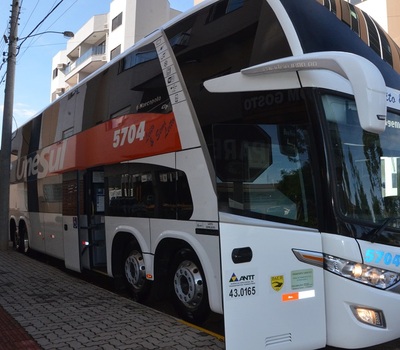 "São ônibus com dois andares, quatro eixos, sendo nove poltronas leito no piso inferior e 40 assentos semi-leito no segundo andar. Além disso, conta com serviços de entretenimento a bordo, entradas USB individuais, tomadas 110V para carregamento de celulares e notebooks, descansa pernas, cortinas que proporcionam maior privacidade entre as poltronas leito, sistema wi-fi e ainda mais espaço e conforto. Os demais carros da nova frota serão distribuídos nas linhas interestaduais e percorrerão municípios de Caçador, Chapecó e Xanxerê, em Santa Catarina, e Francisco Beltrão e Foz do Iguaçu, no Paraná", anunciou o diretor.