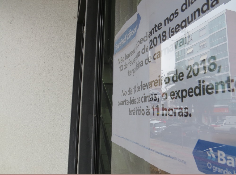 Poucos estabelecimentos abertos, baixo movimento nas ruas e clima de outono antecipado. Na segunda-feira (12) - véspera do feriado de Carnaval – Erechim estava completamente fora da rotina. O funcionamento normal de alguns serviços só devem ser retomados depois na quarta-feira (14), a exemplo das agências bancárias que permaneceram fechadas durante o feriadão e retomam, o expediente somente amanhã, próximo ao meio-dia.