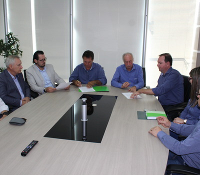 A Associação Comercial, Cultura e Industrial de Erechim e a Sicredi Norte RS/SC firmaram uma parceria que auxiliará as empresas do município no âmbito do crédito. A assinatura do Convênio de Cooperação, que disponibilizará linhas de crédito com as menores taxas de mercado, além de produtos e serviços ofertados e disponíveis no portfólio da Sicredi Norte RS/SC, foi realizada nesta quinta-feira (8), na sede da superintendência regional. Participara da assinatura o presidente da ACCIE, Fábio Vendruscolo; do vice-presidente Roland Koller; do diretor administrativo, Alexandre Zaffari; do presidente da Sicredi Norte RS/SC, Adelar José Parmeggiani; do vice-presidente Adelino Reovaldo Loch; do gerente da Agência Erechim Centro, Volmir Pasa; da gerente da Agência Praça Jayme Lago, Morgana Zin; e do assessor de desenvolvimento, Leandro Marangoni.