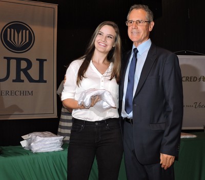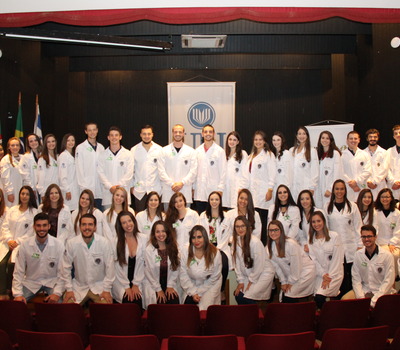 A URI Erechim, em parceria com a Unicred, promoveu, nesta sexta-feira (16), a cerimônia de entrega de jalecos aos calouros da primeira turma do curso de Medicina da universidade. O evento foi realizado no salão de atos e prestigiado pela diretora acadêmica, professora Elisabete Maria Zanin;coordenador do curso, professor Sérgio Bigolin;supervisora pedagógica, Miriam Wilk Wisniewski; diretor-presidente da Unicred, Antônio Gabriel Teixeira; gerente geral da Unicred, Vânia Bez Balestrin, estudantes, pais, professores e convidados.