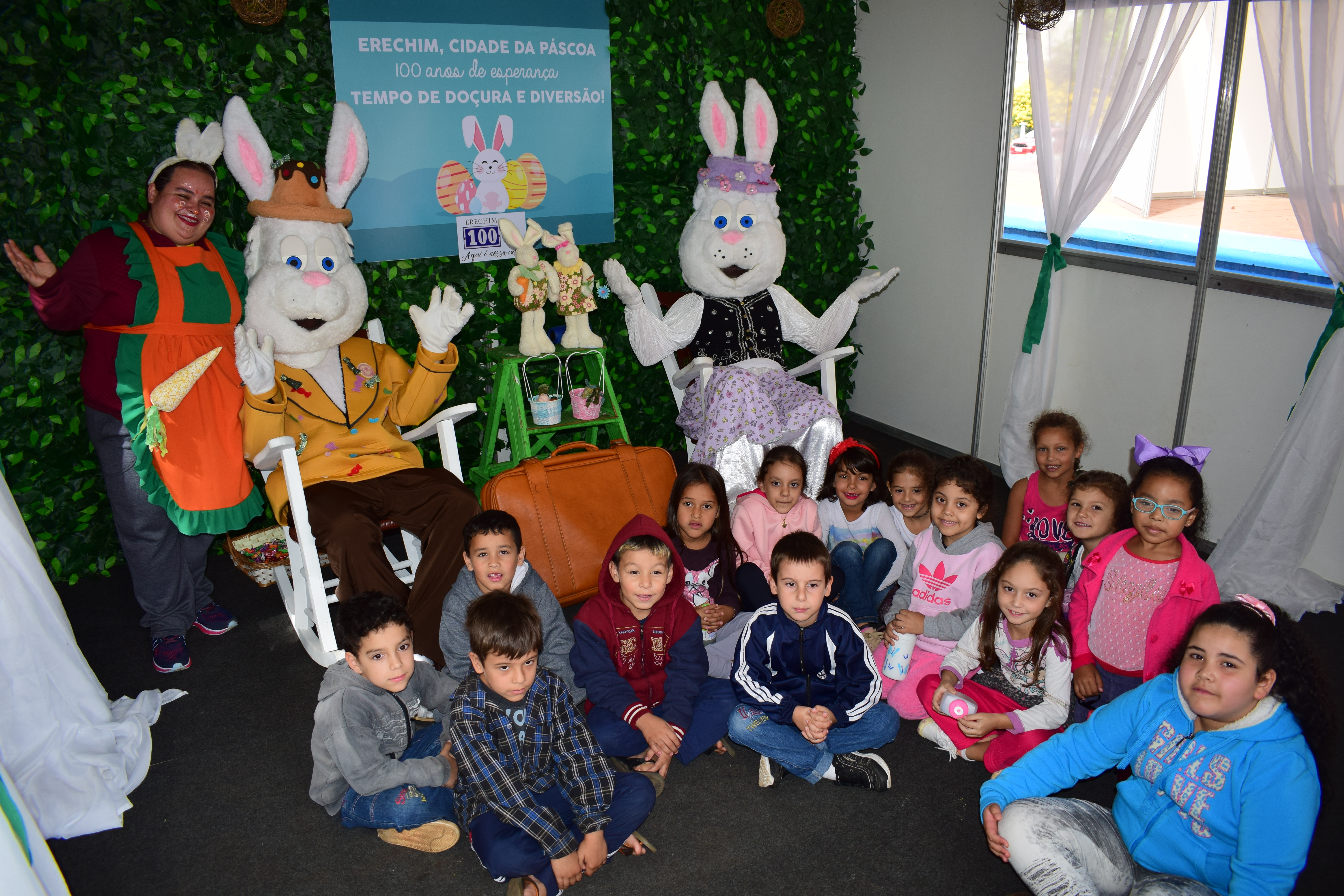 Nas atividades da Festa da Páscoa no Centenário de Erechim, mais de 1.500 crianças já passaram pelo espaço com programação que iniciou na segunda e encerra nesta quinta-feira (29). As crianças são recepcionadas na Casa dos Coelhos, pelo Senhor Coelho e a Dona Coelha - os anfitriões. Na Cozinha da Dona Coelha tem contação de histórias com temas referentes à data, ali elas ainda têm a oportunidade de produzir a sua própria colomba pascal. Já na Sala de Artes do Senhor Coelho, tem pintura de rosto e oficinas culturais como a de decoração de cascas de ovos. O local também conta com um painel para os visitantes tirarem fotos. As atividades recreativas acontecem das 8h30min às 11h30min e das 13h30min às 19h. Para participar é preciso fazer agendamento junto ao Departamento de Cultura, através do fone 3522-9289. A Casa dos Coelhos estará aberta entre os dias 26 a 29 de março das 8h30 às 11h30 e das 13h30 às 20h.