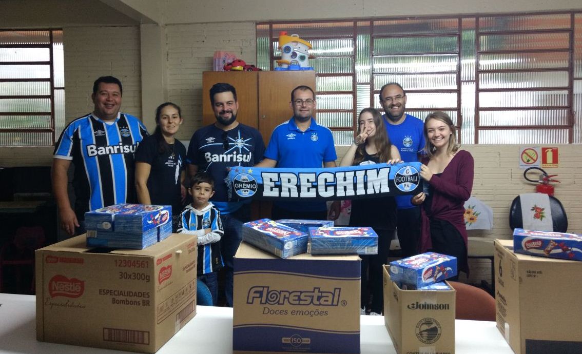 Os torcedores do Grêmio estiveram realizando a entrega de 64 caixas de bombons para as crianças do Cantinho da Luz. A Páscoa é um momento especial e com estes presentes as crianças podem viver um pouco este espírito, já que as famílias não têm condições de presentear os filhos com chocolate.