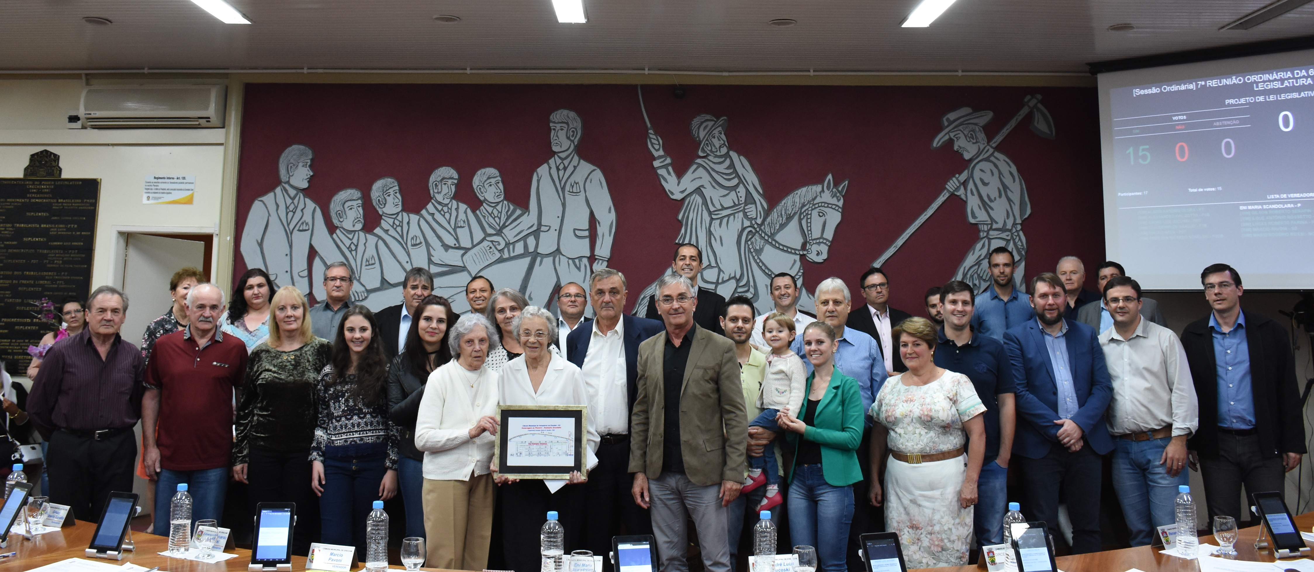 Na última segunda-feira (2), durante a sétima sessão ordinária de 2018, o Legislativo erechinense aprovou por unanimide o Projeto de Lei Legislativo que denomina rua de Erechim de Rodolpho Girardello – Metalúrgico. De autoria do vereador Gilson Serafin (PSD), a proposta estabelece a nova nomenclatura da via localizada nos loteamentos Panorâmico e Fellipio (2 a 6). A família do homenageado esteve presente na sessão e recebeu do proponente uma placa formalizando a congratulação.