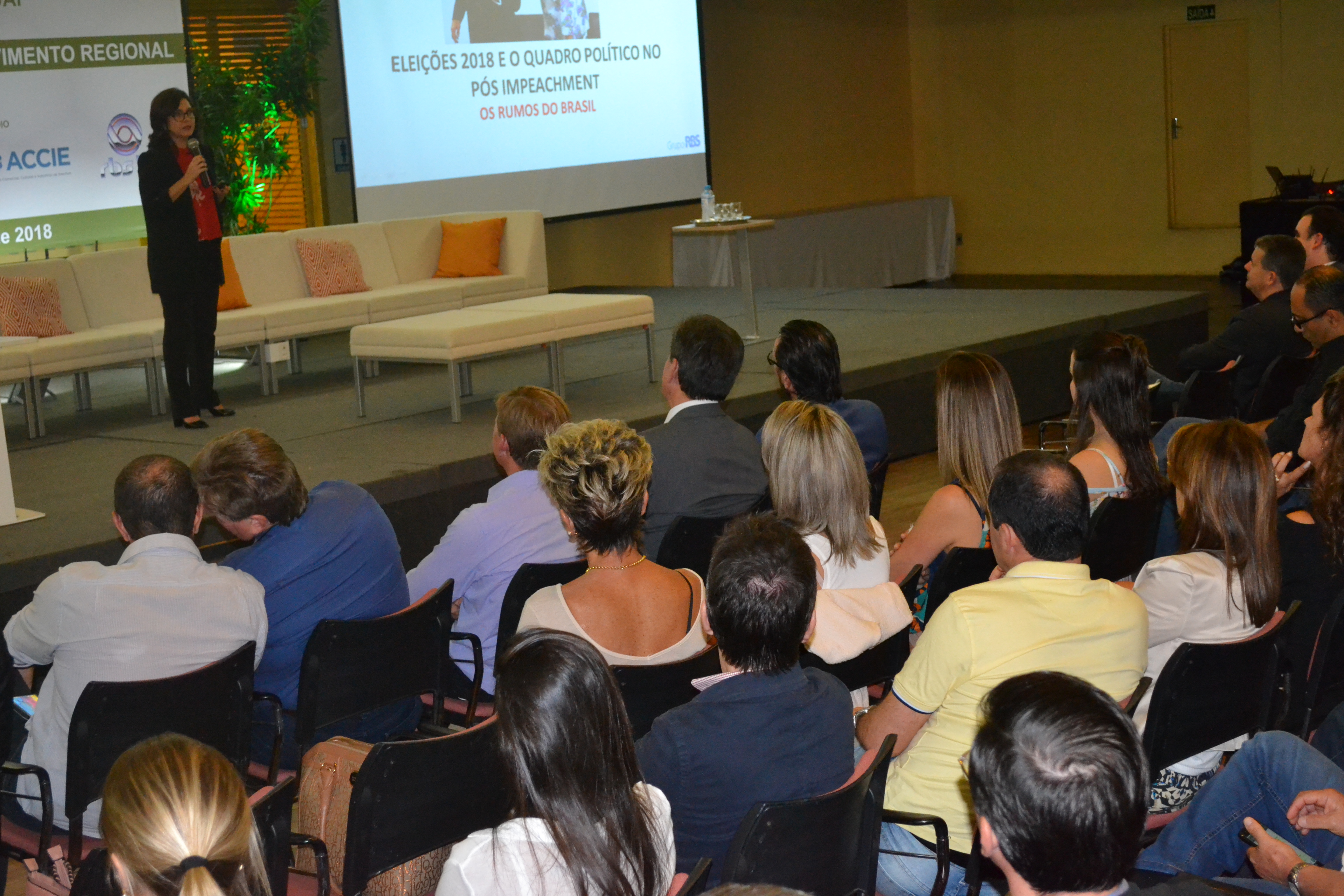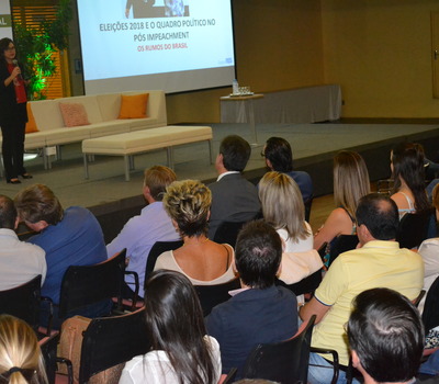 Autoridades, políticos, lideranças empresariais do município e região, comunidade regional, além da diretoria e representantes de entidades, estiveram presentes à palestra da jornalista Carolina Bahia, editora-chefe e colunista da sucursal da RBS/Brasília e comentarista na área política. Carolina Bahia falou sobre “Eleições 2018 e o quadro político pós-impeachment”.