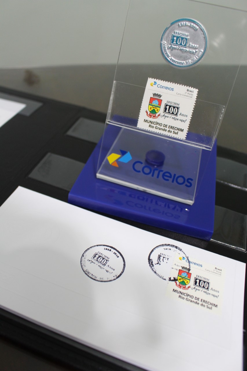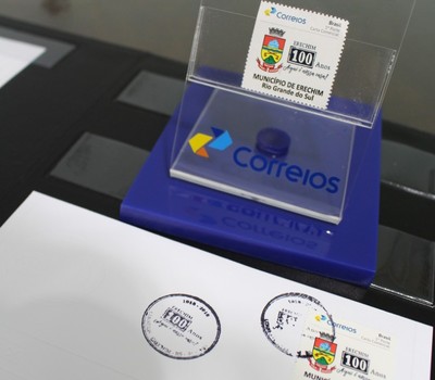 Erechim viveu dias para marcar sua história no último final de semana e feriado municipal. Dentro da programação do centenário, ocorreu um capítulo marcante com o lançamento do carimbo comemorativo e selo personalizado alusivos ao aniversário de 100 anos do município. Autoridades, convidados e imprensa testemunharam o momento histórico na tarde da última segunda-feira (30). A cerimônia foi realizada no salão nobre da prefeitura e contou com a presença da direção da empresa Brasileira de Correios e Telégrafos.