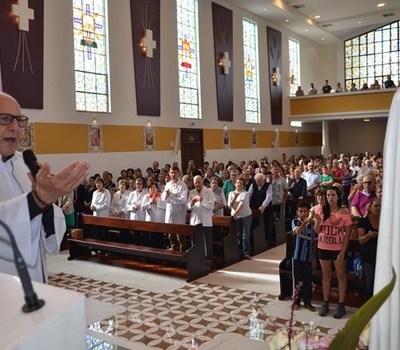 No início da celebração o padre Valter Girelli convidou os féis na refletirem sobre o significado da renovação da vida. Estimulou o olhar sobre o santuário revitalizado por obras de reforma concluídas em 2017 e ponderou: “Com dinheiro conseguimos transformar coisas materiais. O difícil é mudar o nosso jeito de ser e de viver quando as coisas não estão indo bem. Por isso precisamos de momentos de fé e oração para transformar aquilo que não está bem em nossa vida”, estimulando os féis para amarrassem nós nos cordões que estavam disponíveis para todos na portaria da igreja.