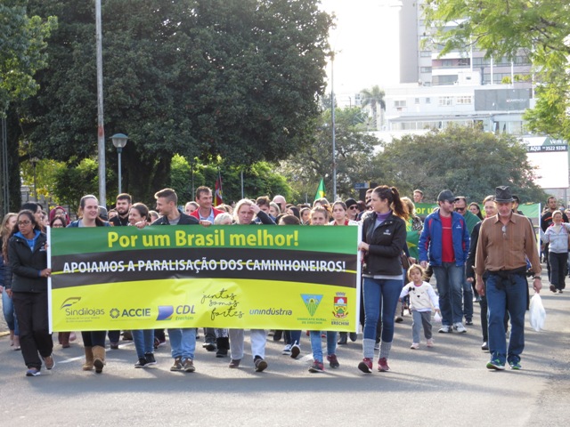 No terceiro dia de mobilização na região do Alto Uruguai, comerciantes e comerciários fecharam as portas da maioria das lojas de Erechim em apoio à greve dos caminhoneiros. A paralisação - convocada pela CDL Erechim, Accie, Unindústria e Sindicato dos Trabalhadores Rurais - coincidiu com uma carreata de caminhões, ônibus, veículos leves, motos e máquinas agrícolas que iniciou na BR 153 avançou pelas ruas centrais de Erechim. Em alguns pontos as calçadas ficaram lotadas com pessoas aplaudindo os manifestantes que cobram a redução dos preços do óleo diesel e a definição de um nova política de preços dos combustíveis distribuídos pela Petrobrás.
