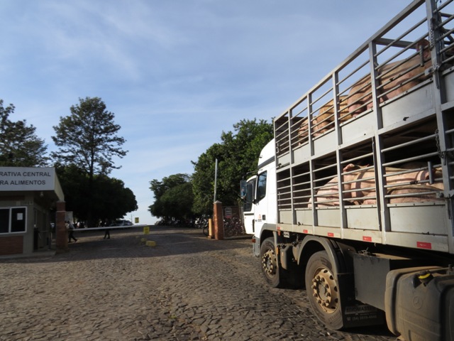 Dez cargas de suínos já foram recebidas no Frigorífico da Aurora desde a zero hora desta quarta-feira. Por volta de 9h um caminhão de Itatiba do Sul, com 110 animais vivos, ingressou no pátio da cooperativa que voltou a operar suas linhas de produção a partir de hoje.