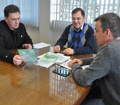 O prefeito Luiz Francisco Schimdt e o secretario da saúde, Jackson Arpini, foram recebidos, na quarta-feira (20), pelo diretor geral da URI - campus de Erechim, professor Paulo Sponchiado.