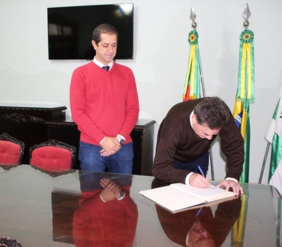 Após assinar o termo de transmissão de cargo ao prefeito em exercício, Rafael Ayub, na manhã desta segunda-feira (25), no Salão Nobre da Prefeitura Municipal, na presença de familiares, secretários municipais, vereadores e funcionários de ambos os poderes, o prefeito Luiz Francisco Schmidt, juntamente com o secretário de Saúde, Jackson Arpini embarcou para Brasília (DF), onde cumprirá extensa agenda. A posse se deu devido ao fato do vice-prefeito Marcos Lando estar em período de férias.