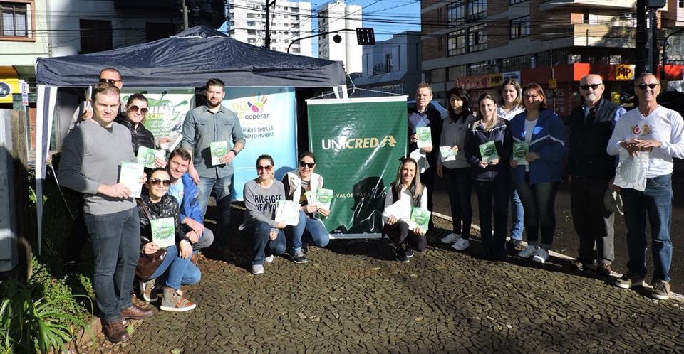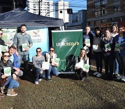 A Unicred Erechim realizou na manhã do sábado (30), uma ação de promoção da saúde para marcar o Dia C - Dia de Cooperar, movimento nacional de iniciativas voluntárias, contínuas e transformadoras, realizadas pelas cooperativas brasileiras com apoio do Sistema OCB. A atividade aconteceu na Esquina Democrática, no centro de Erechim e contou com a parceria da Unimed Erechim, Fundação Hospitalar Santa Terezinha, Hospital Santa Mônica, Hospital de Caridade, Vigilância Sanitária e Secretaria Municipal de Saúde.