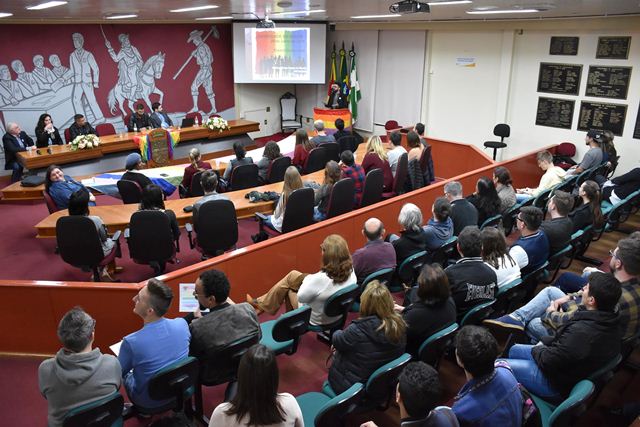 Erechim viveu um momento histórico na noite última sexta-feira (29). A chuva e o frio até assustaram, mas não intimidaram o público, que lotou o plenário da Câmara de Vereadores decorado com as cores da luta para prestigiar e participar de uma importante e cada vez mais necessária discussão. Organizado pelo coletivo Erexim Diversidade, foi realizado a primeira edição do Diversidade em Debate, com o objetivo de conhecer as demandas da comunidade LGBTI do município, bem como lutar por direitos e políticas públicas e buscar entender o porquê de tanto ódio contra esta população.