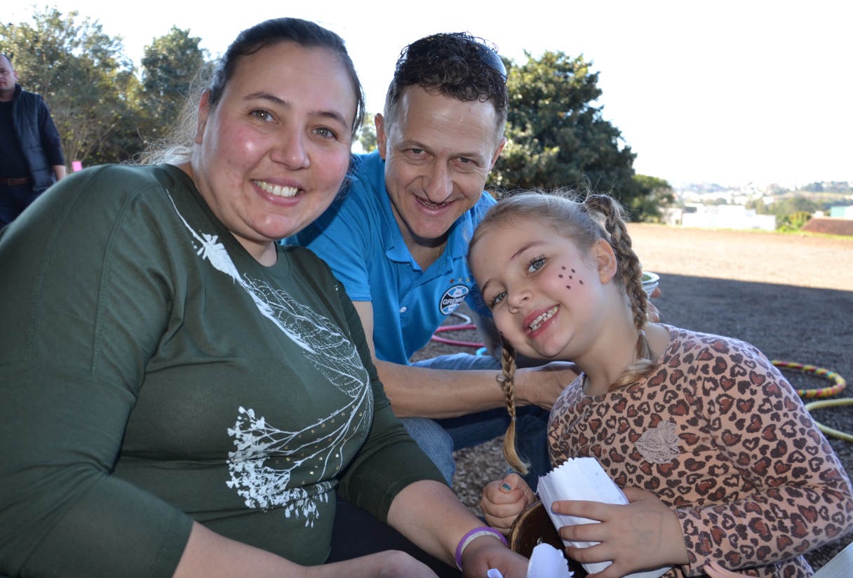 Renata e Dimorvan Zampieri sãos os pais de Maria Eduarda Zampieri, 5 anos, que entrou na Escola de Educação Infantil Tia Gelsumina neste ano. Eles elogiaram a integração com as outras famílias e, especialmente, o brincar com as crianças que se sentem realizadas com a presença dos pais.