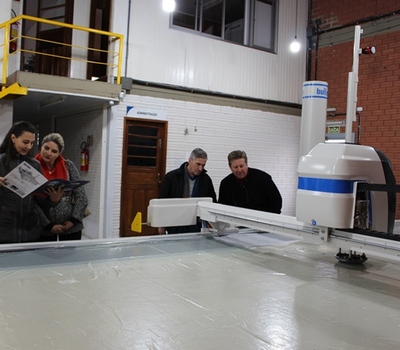 Na oportunidade, acompanharam o funcionamento da máquina automática alemã, com software israelita, Bullmer Procut D8002, que tem a produção constante, o que gera dados precisos de modo que se tenha um cronograma de produção e os pedidos passam a ser organizados facilmente. Reduz o trabalho manual e o desperdício de tecido.