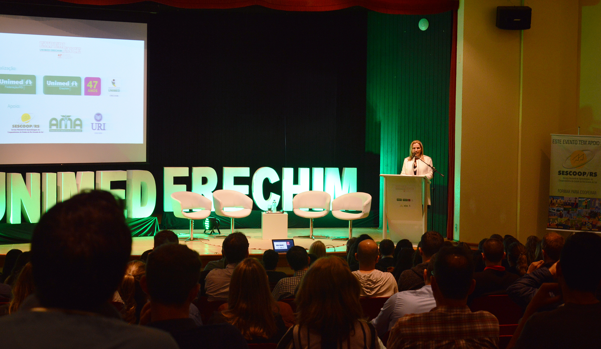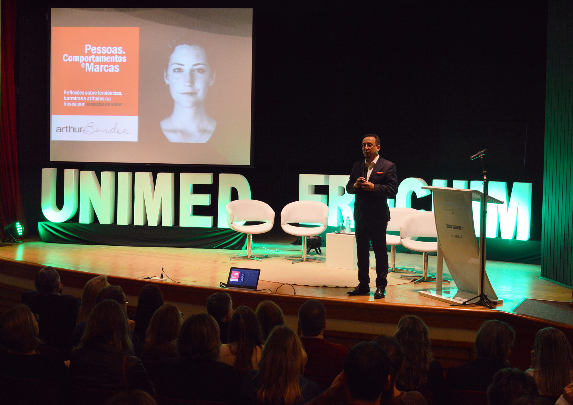Arthur Bender foi o nome escolhido para dar início às comemorações dos 47 anos da Unimed Erechim O palestrante é referência em gestão de marcas e, por 90 minutos, provocou reflexões sobre tendências, barreiras e atitudes na busca por inovação de valor. O evento foi realizado na terça-feira, 9 de outubro, na URI Erechim, com apoio da universidade, Sescoop/RS e Associação Médica do Alto Uruguai (AMA).