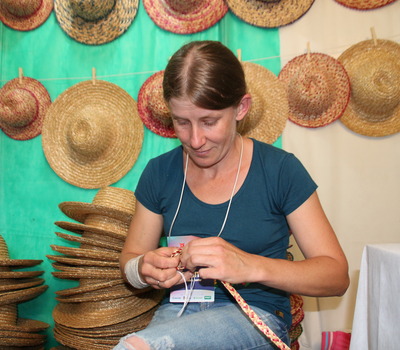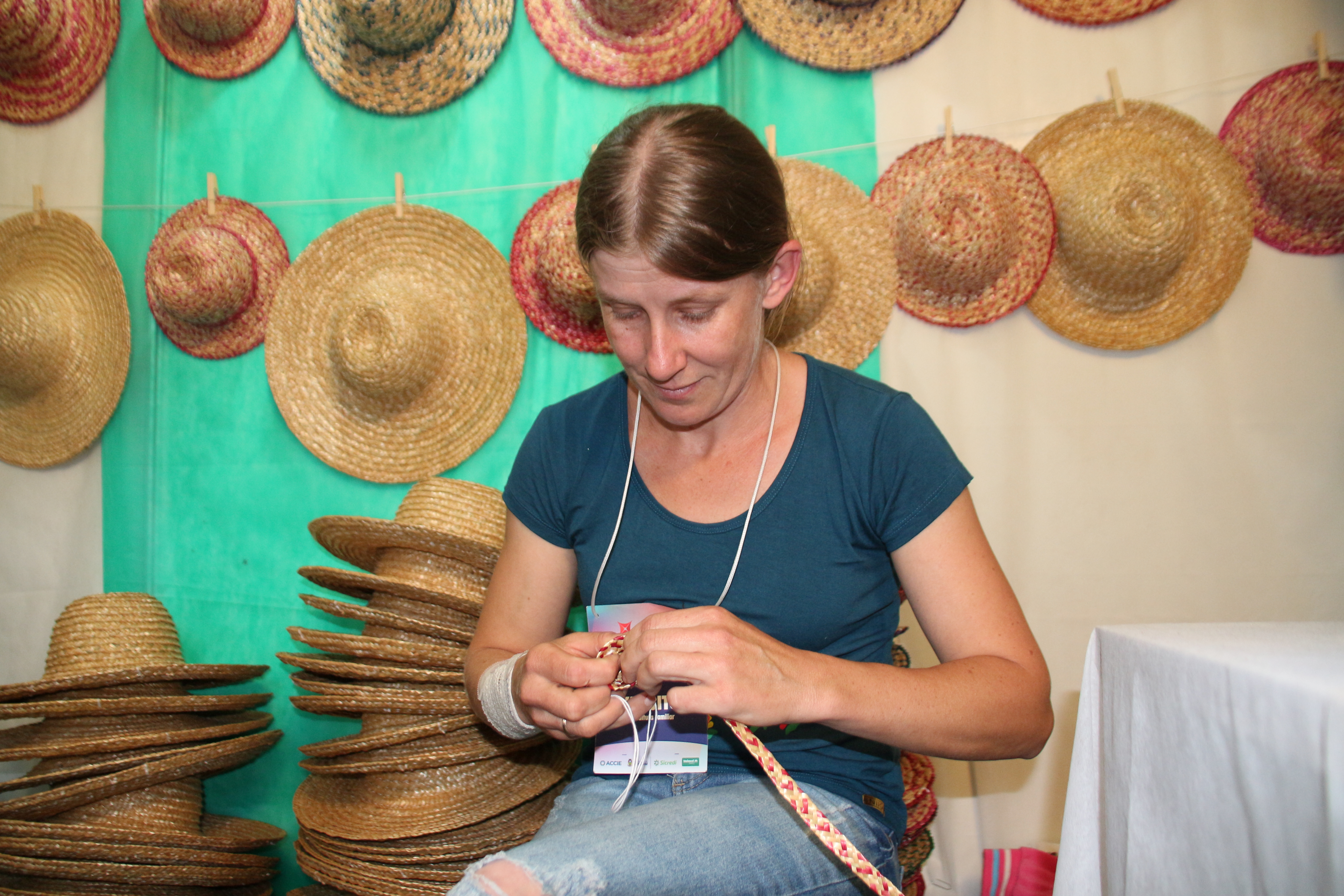 Adriana Wlodarkievicz reside na comunidade de Rio Verde – Linha Dourado – interior de Erechim e aproveitou a Frinape para expor um produto que a mais de 10 anos é seu foco principal de trabalho: o chapéu feito com palha de trigo.