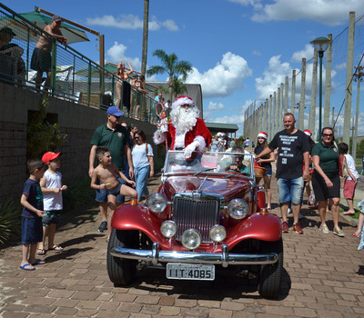 A grande atração da tarde foi a chegada do Papai Noel. Ele cruzou a alameda principal num carro aberto e assim que foi visto pela criançada foi logo recebendo abraços e muito carinho. Ao seu lado, as Debutantes 2018 entregavam doces e pirulitos para os pequenos. O Papai Noel tirou fotos com todos e foi muito disputado pelas crianças. Entregou os presentes que foram sorteados, através de uma parceria com o Master e, também, com o Ypiranga Futebol Clube, que ofertou três bolas oficiais para o sorteio. A chegada do maior símbolo natalino marcou o sábado das famílias verde-rubras.