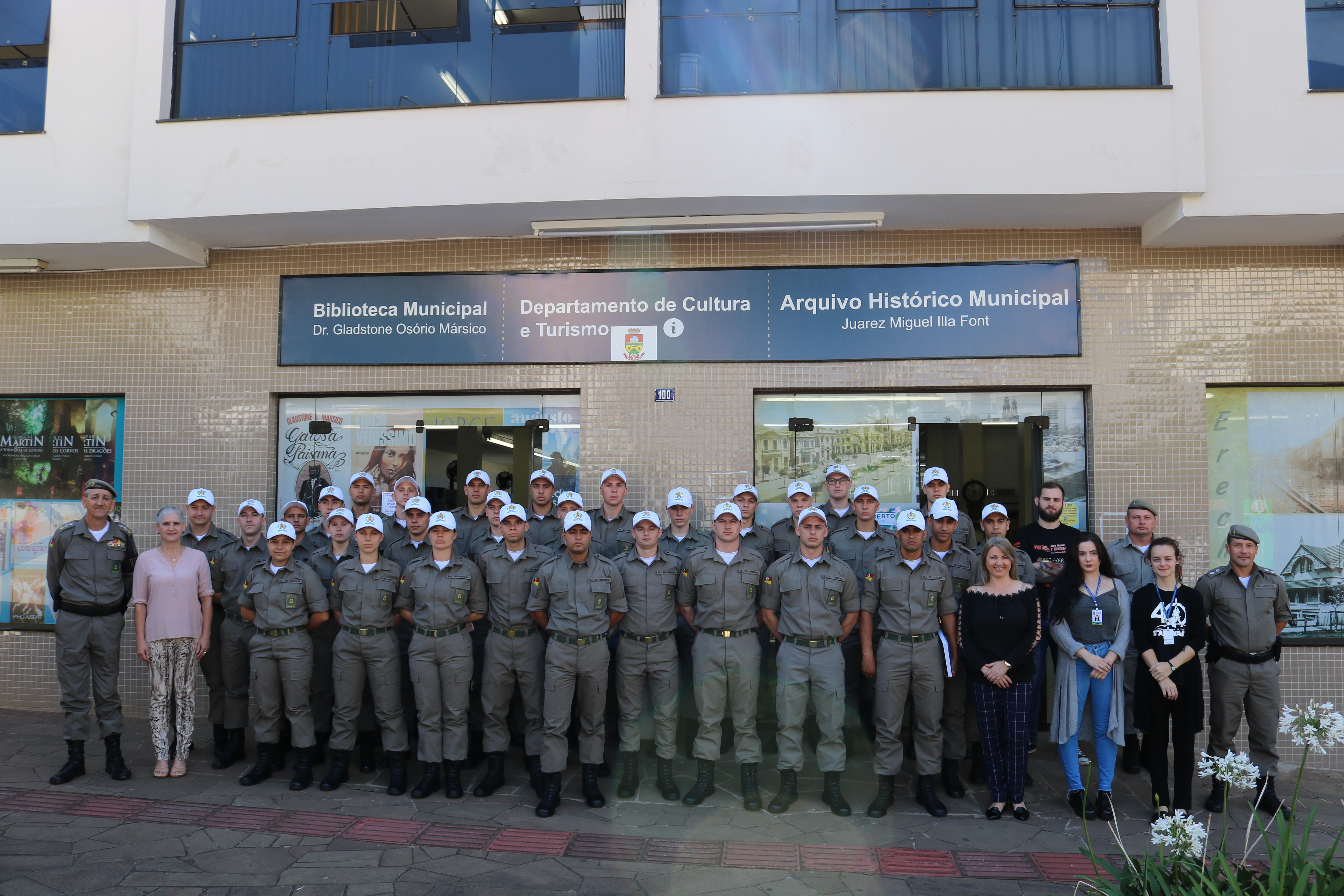 Desta forma, no intuito de otimizar a preparação dos futuros soldados, que atuarão no nosso Órgão Policial Militar (OPM), surgiu a iniciativa de propiciar aos alunos do curso uma visita e ao Arquivo Histórico Municipal Juarez Miguel Illa Font e a Biblioteca Pública Municipal Dr. Gladstone Osório Mársico, no dia 06.