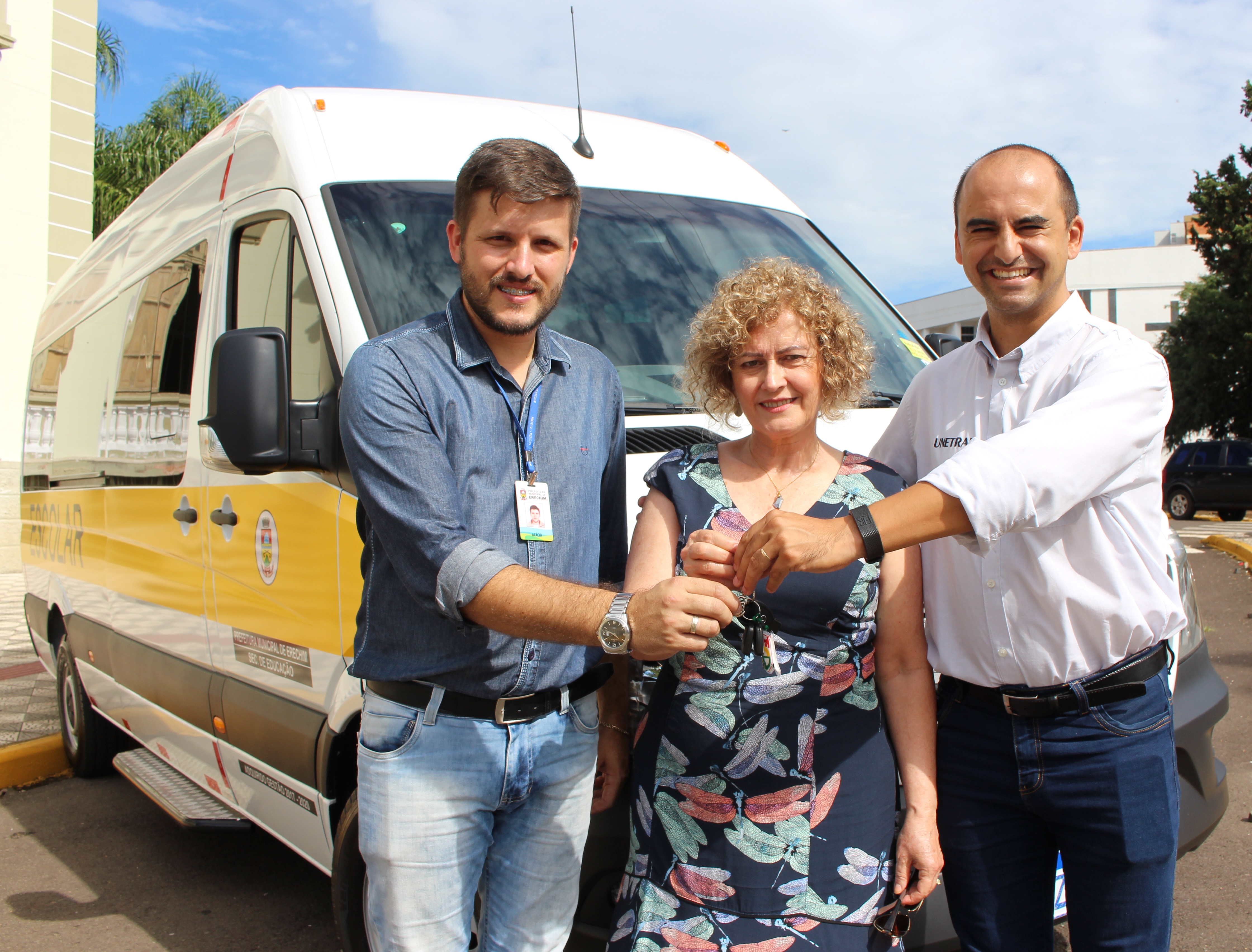 Um dentre os tantos objetivos de atuação da Secretaria Municipal de Educação é garantir transporte escolar de qualidade. Neste sentido, foi adquirido com recursos próprios um novo veículo entregue à Secretária Vanir Clara Bombardelli nesta terça-feira (15). As chaves da Sprinter Mercedes-Benz de 17 lugares foram repassadas pelo representante da empresa vencedora da licitação, realizada em outubro de 2018, também ao Chefe de Divisão de Transportes da Secretaria, Acácio Mentz.