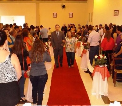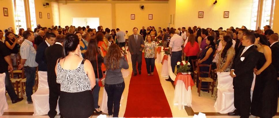 Pe. Tranquilo Manfroi, com a participação de mais de 300 pessoas. Após a cerimônia religiosa, três casais recepcionaram convidados no salão de festas da comunidade N. Sra. da Saúde, Rio Tigre.