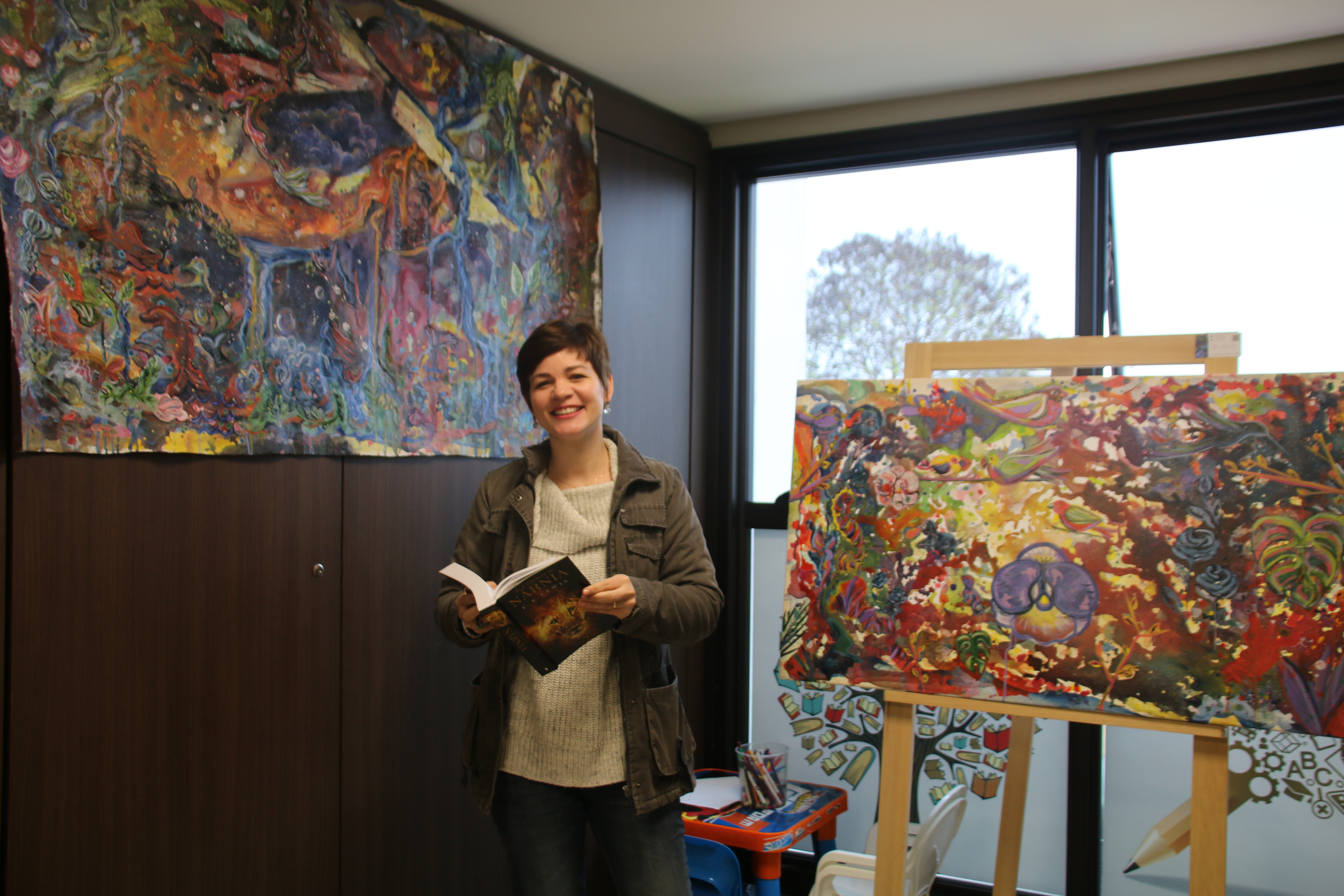 O incidente se desdobrou em outras duas telas. "Eu as chamo de fauna e flora para representar as formas de vidas. Com isso, surgiu o convite da exposição no Santa Mônica, a qual iria acontecer só depois da Primavera, mas com o Agosto Cultural, decidi adiantá-la. Na atividade dessa sexta-feira com as crianças da escola, eu contei um pouco desse processo de criação e, sobretudo, da criatividade que envolve essa forma de expressão", concluiu Priscila.