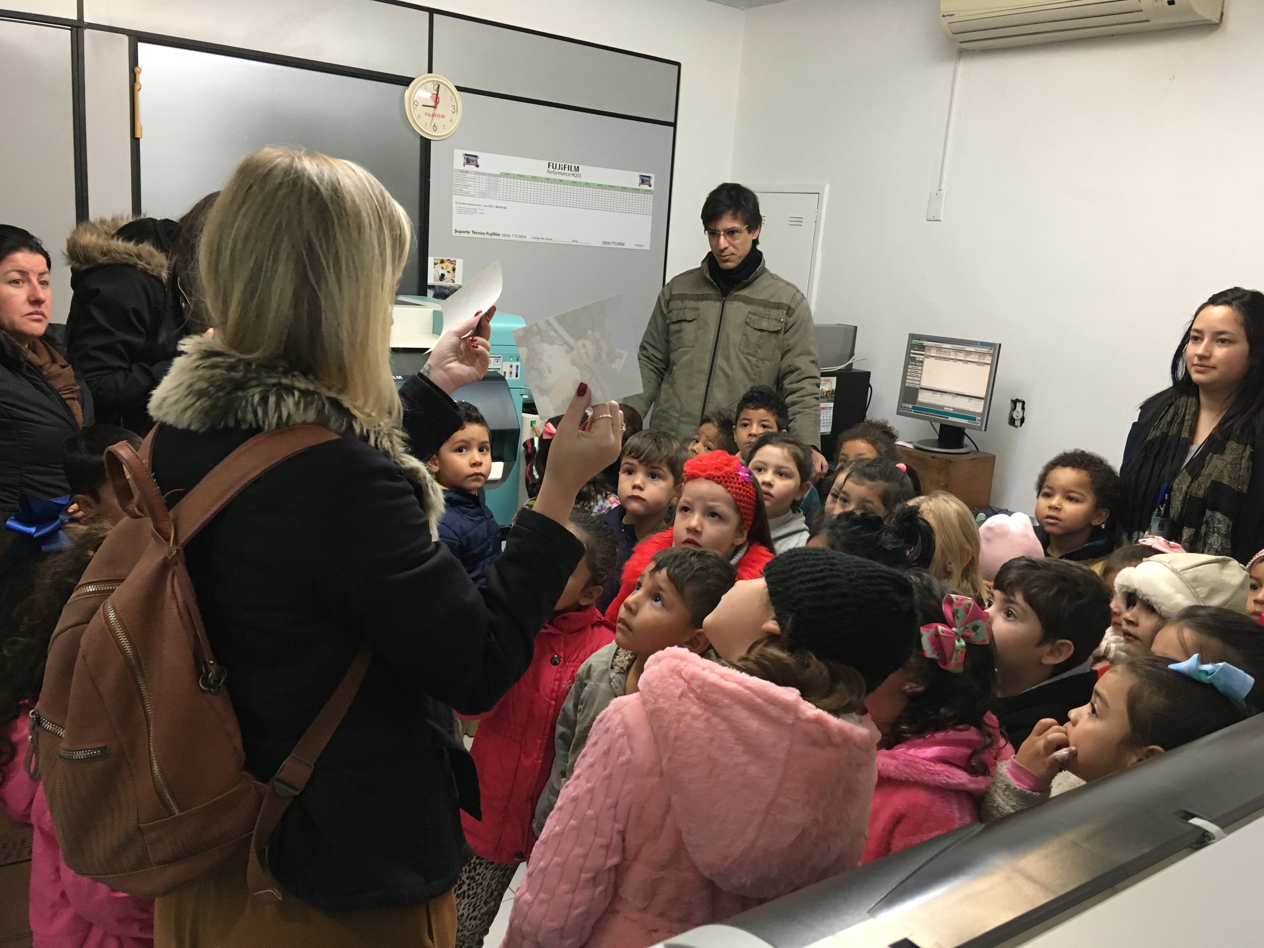 Em recente atividade desenvolvida, as crianças do Pré A da Escola Municipal de Educação Infantil Dom João Aloísio Hoffmann realizaram uma visita na Empresa Zardo Color Fotografias, momento em que vivenciaram o processo de revelação de fotos, conheceram os estúdios e as máquinas fotográficas de última geração.