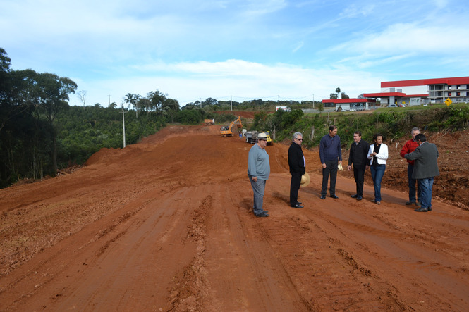 Na manhã desta segunda-feira (2) o prefeito de Erechim Paulo Polis e a vice-prefeita Ana Oliveira estiveram acompanhando o andamento das obras de construção do novo trevo de acesso ao Distrito Industrial Norte.