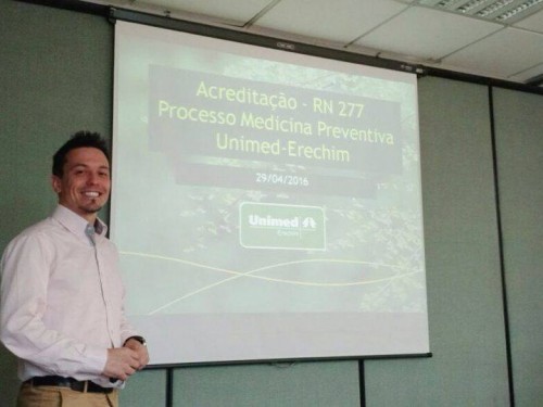 A Unimed Erechim apresentou, em reunião do Comitê Estadual de Atenção Integral à Saúde (CAS/RS), programas desenvolvidos pelo serviço de Medicina Preventiva e falou sobre o processo de Acreditação, junto à Agência Nacional de Saúde Suplementar (ANS). O evento foi realizado na última sexta-feira, 29 de abril, no Salão Nobre Mallmann da Unimed/RS, em Porto Alegre, e contou com a presença de gestores, coordenadores, supervisores e colaboradores de outras Unimeds.