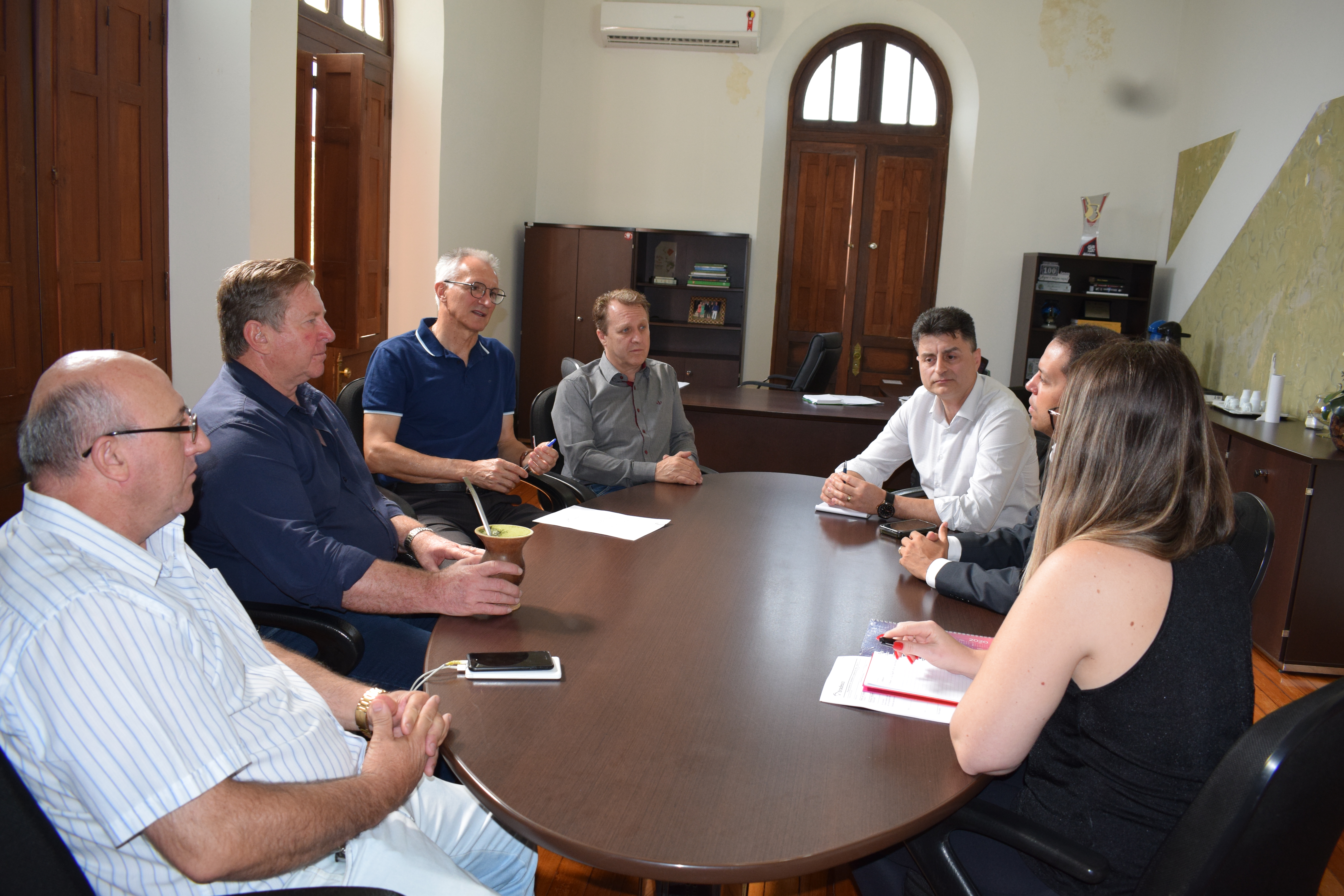 O prefeito em exercício Marcos Lando, juntamente com os secretários da Administração Valdir Farina e da Agricultura e Desenvolvimento Econômino Altemir Barp e o Chefe de Gabinete Leonir Nadal, recebeu na manhã desta quarta-feira, 8, o gerente da agência local do Bradesco e do regional de Passo Fundo.