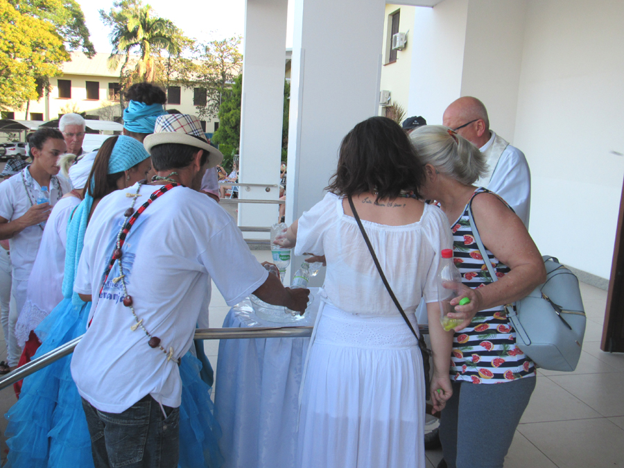 O grupo entrou no Seminário de Fátima tocando atabaque e cantando rezas para Oxalá, o que chamou a atenção de centenas de pessoas que passavam a tarde no local. Em respeito aos religiosos, o volume da música que tocava nas tendas da Festa di Bacco foi reduzido até que encerrasse o encontro.