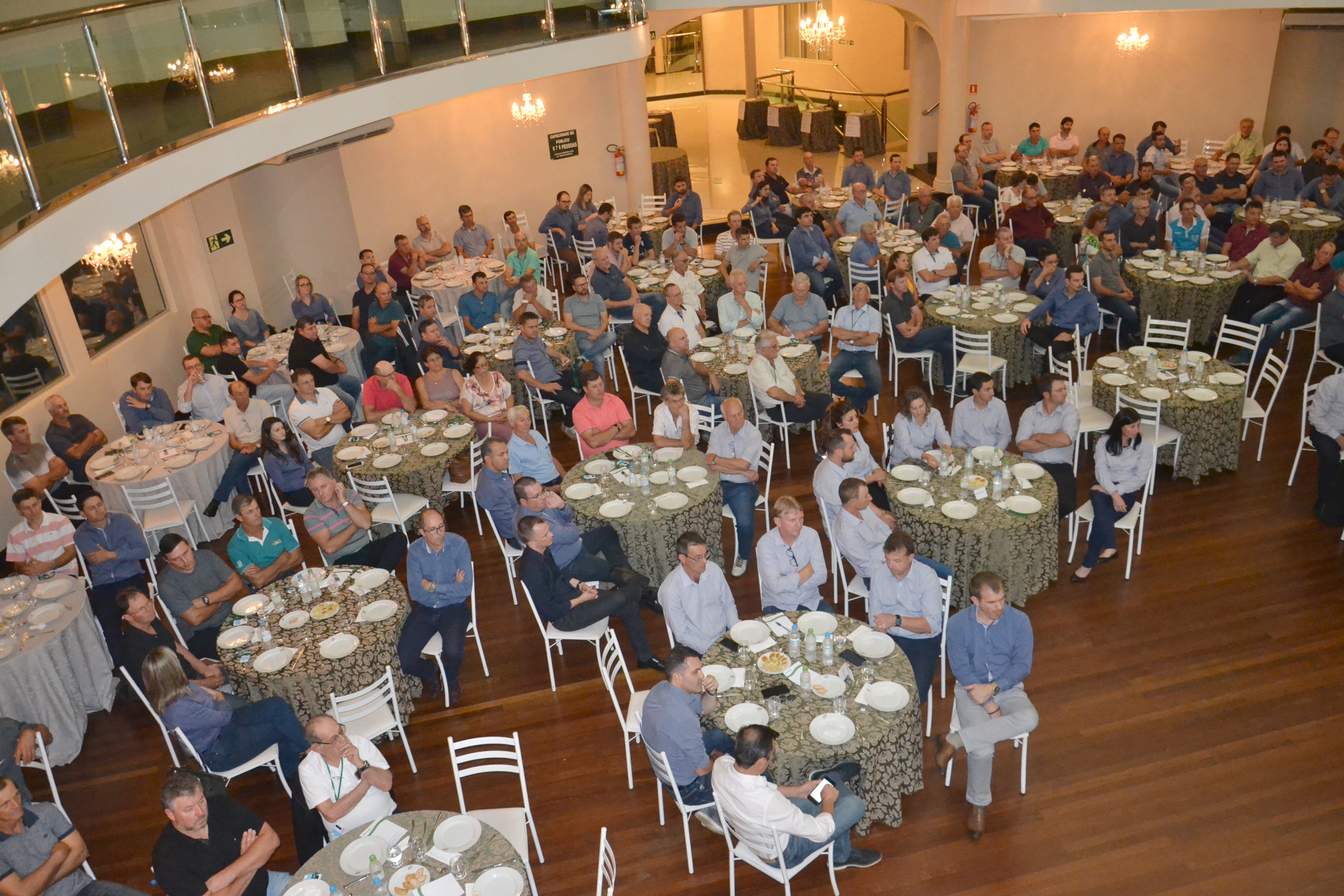 A Sicredi UniEstados reuniu, na noite desta terça-feira, 28 de janeiro, mais de 230 delegados de núcleos, diretores, conselheiros de Administração e Fiscal, gerentes da Superintendência Regional e das agências, dando início às assembleias deste ano. A reunião preparatória para as Assembleias 2020 foi realizada no Salão Principal do CER Atlântico e contou com a presença do presidente da Sicredi UniEstados, Adelar Parmeggiani; vice-presidente Luis Carlos Caramori; diretor Executivo Elisandro Marmentini e diretor de Operações, Jaime Testolin, responsáveis por explanarem sobre as informações que serão levadas aos associados.