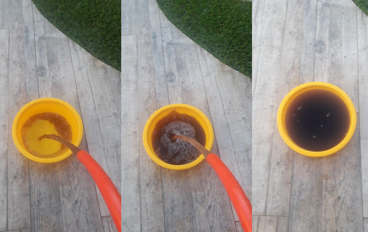 Moradora do Loteamento Rio Tigre, em Erechim, enviou sequência de fotos mostrando o estado da água que abastece o local, nesta sexta-feira (31). Segundo ela, que foi surpreendida pelo fato após chegar do trabalho, a água estava chegando normalmente, quando de repente começou a ficar escura. “Não parece ser terra, é um tom avermelhado escuro, parece ter algum produto na água”, relatou.