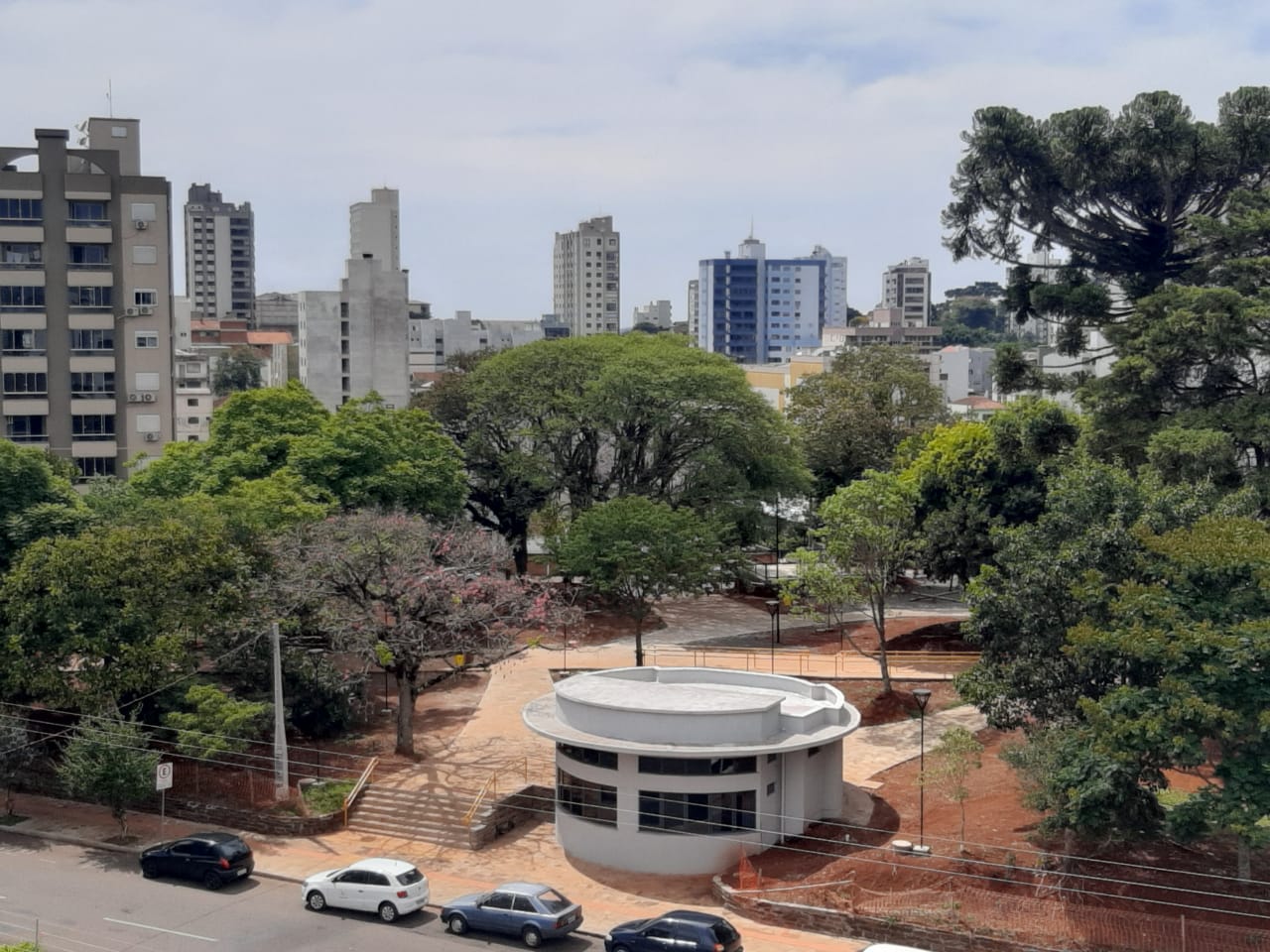 A praça Daltro Filho, vista de cima, mostra que tem muito a ser feito ainda. Principalmente a parte de jardinagem, que teve um imbróglio judicial com a segunda colocada no certame. No decorrer da remodelação, problema numa das rampas para prática do skate teve que ser consertado.