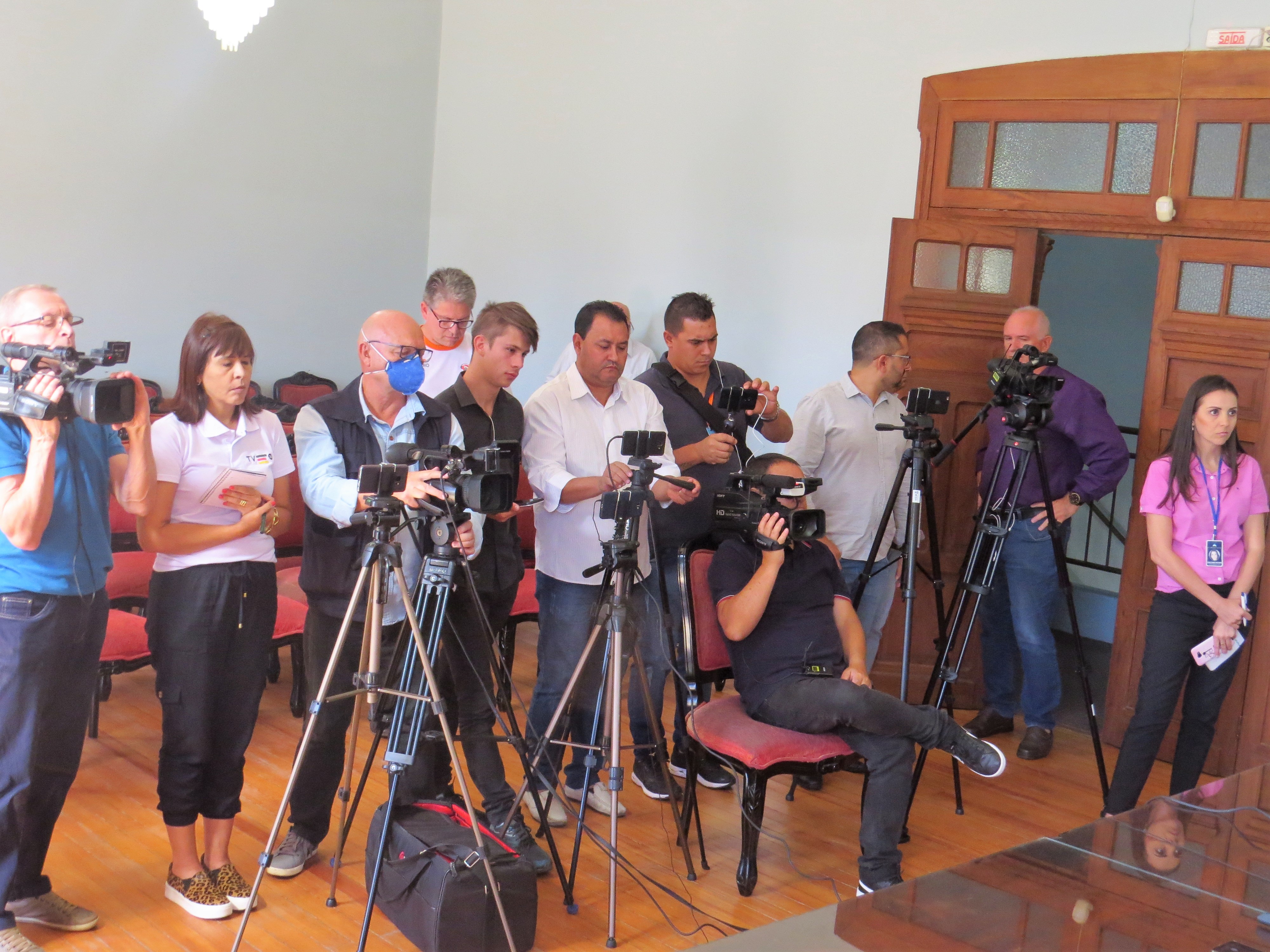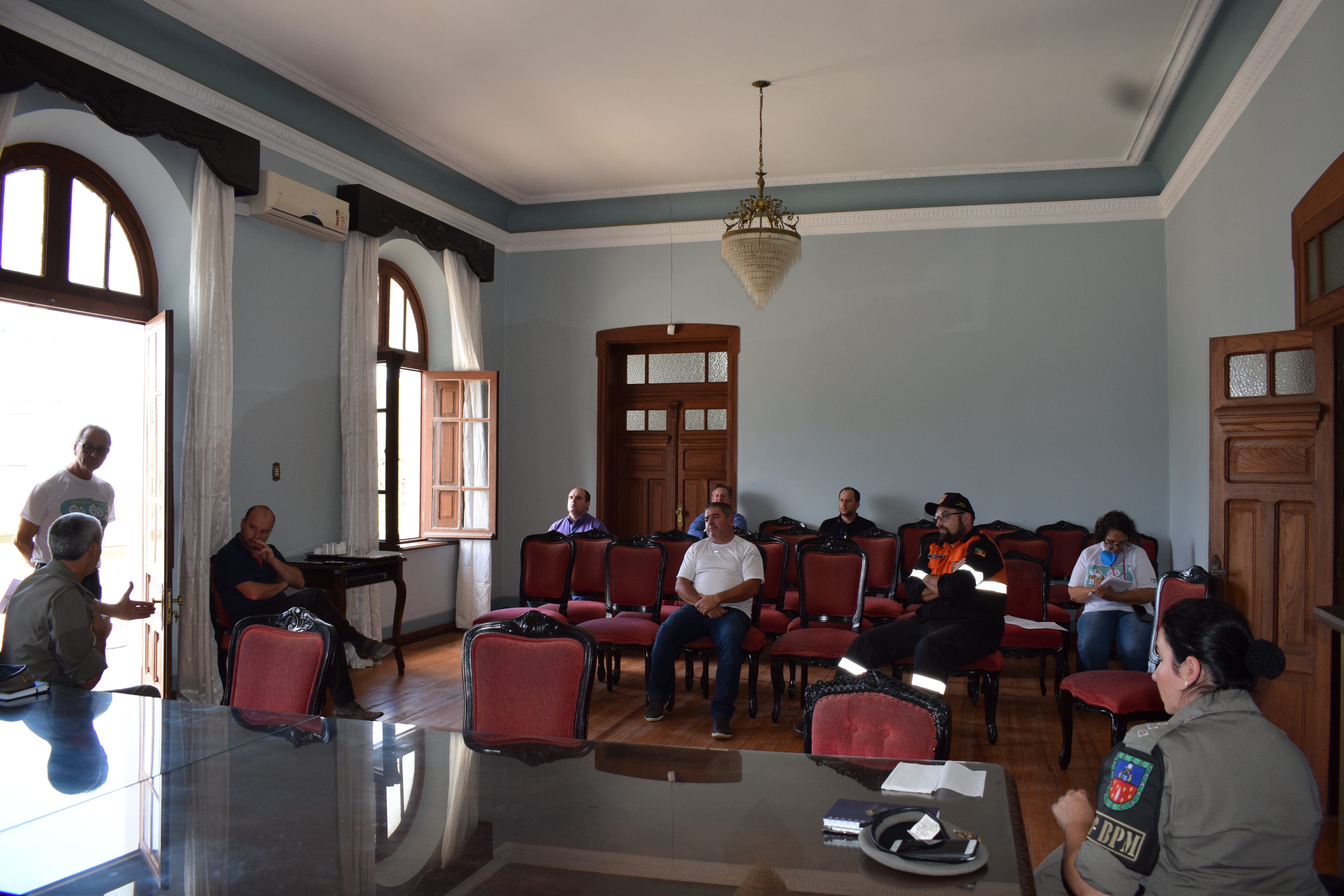 Na segunda-feira (23), nova reunião no Salão Nobre, desta vez com o comitê de apoio para ações de fiscalização ao decreto municipal. Os participantes mantiveram distância correta entre um e outro.