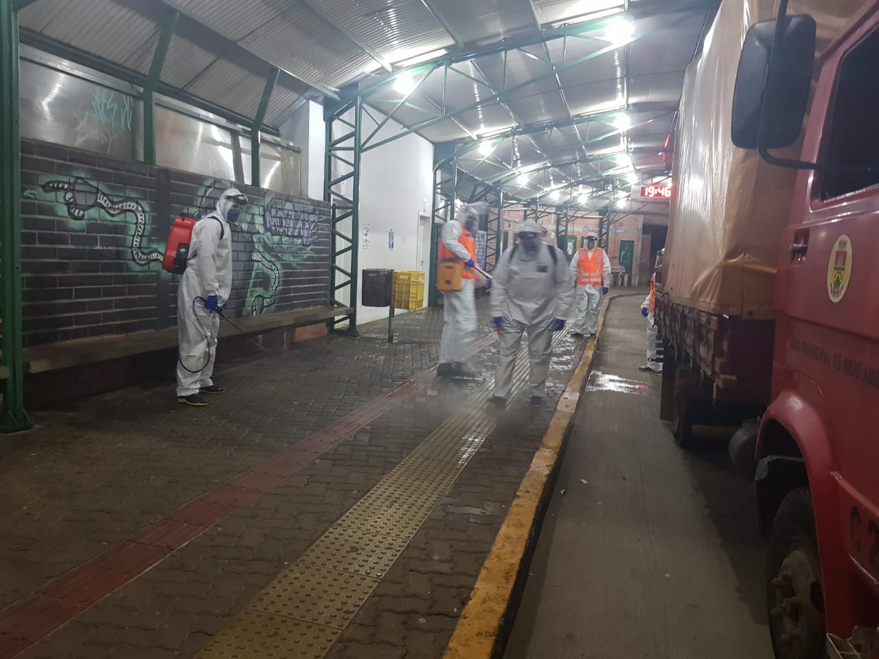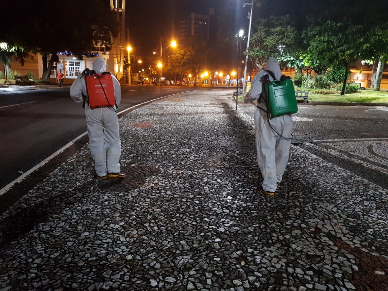 O trabalho de desinfecção iniciou pelo terminal de ônibus urbano e se estendeu na parte externa dos nossos hospitais e na UPA. O trabalho de desinfecção prosseguiu junto as viaturas da Brigada Militar, no pátio e estacionamento do 13º BPM e nas UBS’s, sempre com o apoio da Brigada Militar.