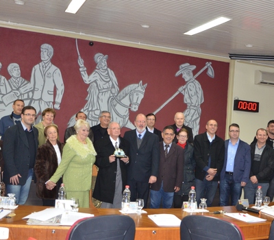 Milton Doninelli, primeiro radialista do município, recebeu na noite desta segunda, a outorga do Troféu Castelinho, maior honraria dada pelo Poder Legislativo no município de Erechim. A proposição foi do vereador Zé da Cruz, orador da noite.