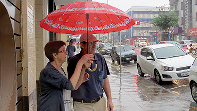 A segunda-feira (14) foi marcada pela chuva forte e continua durante o dia. Ontem (14) choveu aproximadamente 50mm e as temperaturas permaneceram entre os 17°C e os 23°C. Os guarda-chuvas não devem ser guardados durante essa semana, já que a previsão de instabilidade permanece de chuva até a sexta-feira (18).