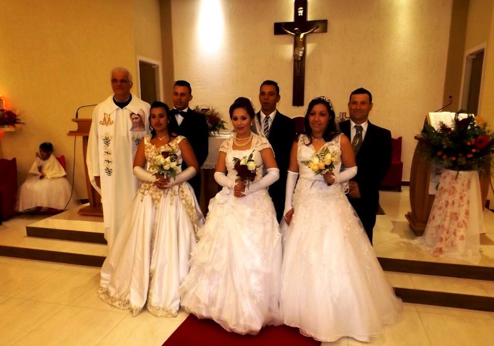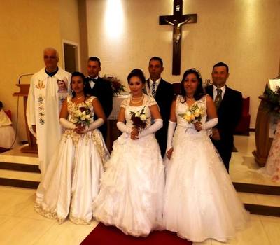 Três casais oficializaram o casamento em cerimônia religiosa coletiva realizada no sábado (9) no Bairro Progresso. A celebração foi organizada pelos casais do Movimento Familiar Cristão e a missa presidida pelo padre Tranquilo Manfroi, pároco da Paróquia São Francisco do Bairro Progresso. A confraternização conjunta dos três casais e convidados ocorreu no salão da comunidade Nossa Senhora da Saúde do Rio Tigre.